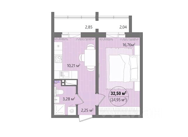 + Раздельный санузел, балкон;