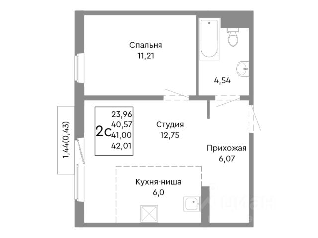 Продаётся 2-комнатная квартира в строящемся доме (Дом 13), срок сдачи: II-кв. 2027, общей площадью 41 кв.м., на 4 этаже.