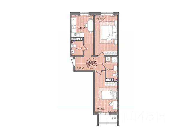 Квартира общей площадью 90,6 кв.м расположена на комфортном 10 этаже 24 этажного монолитно-каркасного дома.