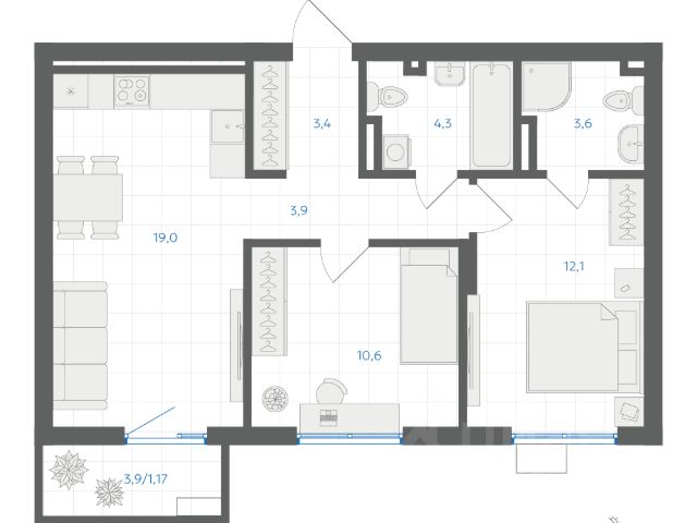 Городской квартал "4 Ленина" в стиле современного конструктивизма станет многофункциональным пространством для комфортной жизни в городе. Проект состоит из 3 домов, каждый дом сформирован 4 секциями переменной этажности от 6 до 17 этажей в 7 минутах от Площади Революции. ЖК "4 Ленина" — первый жилой квартал по программе реновации в Челябинске. Комплексное развитие территории включает в себя возведение кирпичных и индустриальных секций, эффективное зонирование закрытых дворов, ландшафтный дизайн от европейского бюро, плейрум, чатрум и коворкинг с террасой. Планировочные решения в "4 Ленина" подойдут для любого дизайн-проекта: квартиры со вторым светом и высокими потолками, террасами и тёплыми лоджиями, мастер-спальнями и кухнями-столовыми. Отделка квартир в индустриальных домах — white box, и черновая для кирпичных секций. Сквозные входные группы выполнены в едином дизайн-коде, предусмотрены велолапомойки, помещения для велосипедов и самокатов. В шаговой доступности есть всё необходимое: транспортная доступность, две образовательные и частная школы, 6 детских садов, взрослая и детская поликлиники, бассейн, дворец спорта, областная спортивная школа по хоккею и парк "Сад победы". Остались вопросы? Свяжитесь с нами и узнайте больше о жилом квартале "4 Ленина" Продается 2-комнатная квартира на 2 этаже в Челябинске.