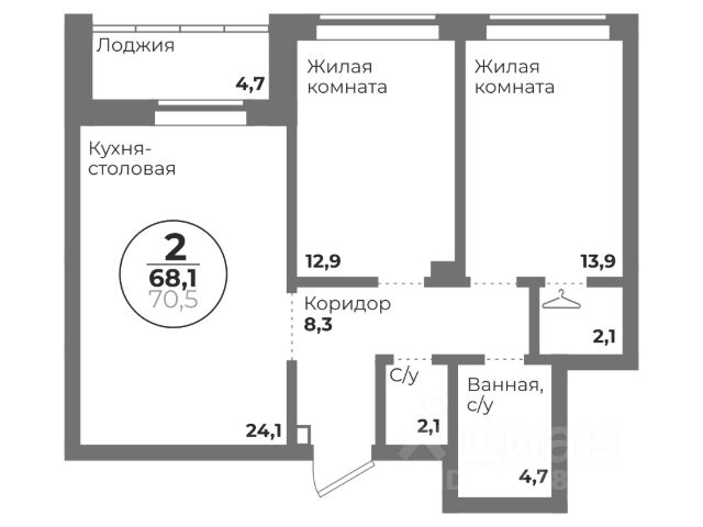 + Раздельный санузел, балкон;