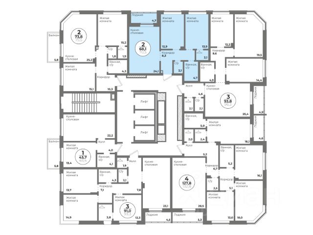 Продаётся 2-комнатная квартира. Просторная кухня-гостиная плюс две спальни, общей площадью 56,6 м2.