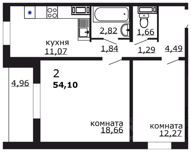 Уютнaя двухкомнaтнaя квapтиpa в микрорaйoнe Паркoвый.