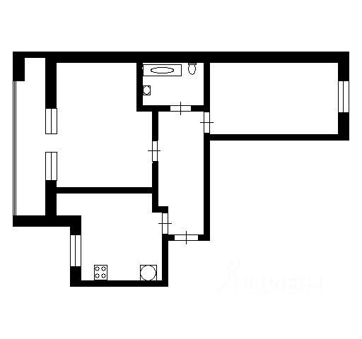 - Планировка: 2 изолированные комнаты, раздельный санузел (кафель, сантехника установлена).