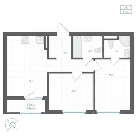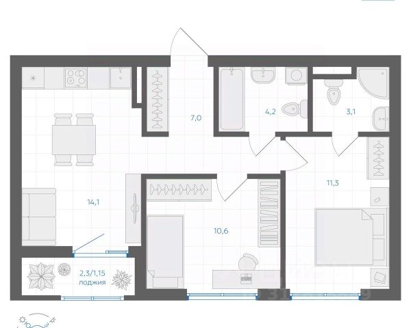 • ✅ Минимальная площадь: 41,2 м²