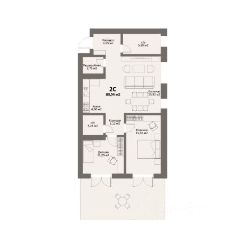 Продаётся 2-комнатная квартира. Просторная кухня-гостиная плюс две спальни, общей площадью 56,6 м2.