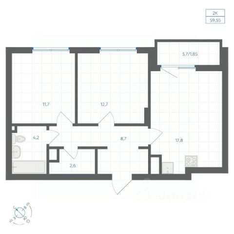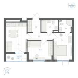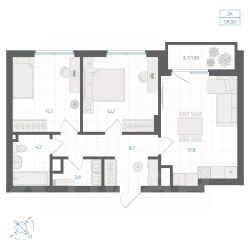 Продаётся 2-комнатная квартира в строящемся доме (Дом 13), срок сдачи: II-кв. 2027, общей площадью 62.05 кв.м., на 2 этаже.