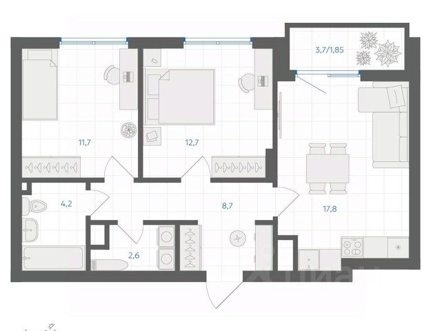 Арт. 125184213 В продаже! Звоните! Продается квартира вблизи центра! Ориентир: ТРК Родник. Преимущества: • Благоустроенная придомовая территория • Удобный второй этаж Планировка: • Построчный длинный коридор • При входе — гардеробная комната рядом с кухней Комнаты: • Кухня — 9 м² • Гостиная — 18 м² • Спальня — 14 м² • Большая лоджия — 7 м² Санузел: • Раздельный Дополнительно: • На полу в комнате ламинат. , натяжные потолки • Остается кухонный гарнитур, шкаф-купе и кровать Чистая продажа. Квартира без обременений. Никто не прописан. Не упустите возможность стать владельцем уютной квартиры в отличном районе! Звоните для записи на просмотр!