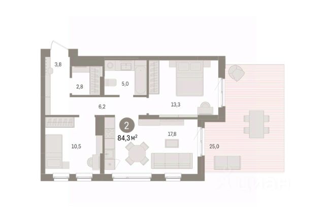 Двухкомнатная квартира с предчистовой отделкой в ЖК "Брусника в Эльтауне" на 1 этаже. Общая площадь: 84.82 кв.м. Высота потолков 2.7 м. Квартира находится в корпусе 2. Дом монолитный, одноподъездный, высотой 8 этажей. На этаже 10 квартир. В подъезде 1 пассажирский и 1 грузовой лифт. Окончание строительства - 4 квартал 2028 года. Оформление сделки по договору долевого участия. Квартира с кухней-гостиной и двумя спальнями в Брусника в Эльтауне. Особенности планировки: новые лоты, окна в пол, панорамное остекление, разнесённые спальни, терраса. квартиры в нашей базе: ЛТН01.1-Ж2.1.2. Квартал "Брусника в Эльтауне" расположился к северу-западу от Челябинска в окружении лесного массива, рядом с Лебединым прудом и Скалистым озером. Две главных слова, характеризующих Эльтаун, — концентрация и разнообразие. Его структуру формируют сразу несколько типов застройки — коттеджи, таунхаусы, квартиры в мало- и среднеэтажных домах, в перспективе нескольких лет здесь будут открыты десятки кафе, ресторанов, магазинов, аптек, медицинских и фитнес-центров. Для круглогодичного отдыха в городе построят собственный курорт. В Эльтауне будет действовать концепция непрерывного образования. Уже открыт муниципальный детский сад "Ёлочка" на 230 мест. В планах — инновационная школа на 1100 учеников. Кроме того, в Эльтауне организован Научно-исследовательский центр девелопмента МBA и МФТИ — одного из лучших вузов страны. Брусника стала полноправным девелопером Эльтауна. Мы построим здесь новый квартал со среднеэтажным жильём, богатым озеленением и разнообразной коммерческой и социальной инфраструктурой. Квартал Брусники расположен на въезде в город и станет его лицом. Недалеко от проекта проходит Новоградский тракт. По нему можно быстро добраться до Челябинска, озёр Увильды, Тургояк, Кисегач и Еловое, горнолыжных курортов "Солнечная долина", "Евразия" и "Завьялиха", парков "Таганай" и "Зюраткуль". Между Эльтауном и Челябинском курсирует автобус. Количество маршрутов и остановок общественного транспорта будет постоянно увеличиваться. До Челябинска — 5 минут на автомобиле До железнодорожного вокзала — 35 минут До аэропорта — 45 минут Проект Брусники в Эльтауне — комплексная застройка, состоящая из домов высотой не более 8 этажей. Территория Брусники разделена на несколько функциональных зон. Со стороны улицы Павленкова мы спроектировали фронт с коммерцией и приветственными площадями. На первых этажах домов — кафе, магазины, рестораны, кружки и образовательные студии. В глубине квартала расположатся общественные пространства с дождевыми садами, огородами и рощей. Ближе к лесу — пространство, которое мы назвали "задний двор". Здесь — игровые лужайки, плейхабы, луг для пикников и йоги, волейбольные площадки, воркаут. В этой же части, на границе квартала, предусмотрена парковка, на которой мы высадим взрослые деревья и кустарники. #zMDCsd