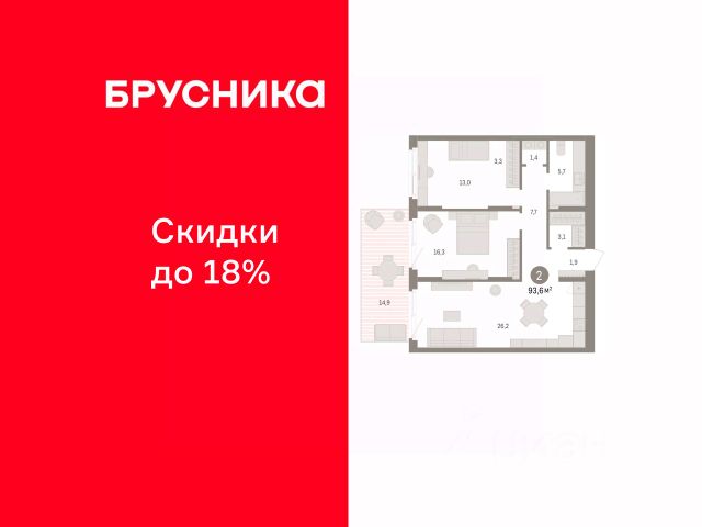 Просторная 2-комн. квартира с предчистовой отделкой в ЖК "Брусника в Эльтауне" на 1 этаже. Общая площадь: 93.43 кв.м. Высота потолков 2.7 м. Квартира находится в корпусе 4. Дом монолитный, одноподъездный, высотой 8 этажей. На этаже 7 квартир. В подъезде 1 пассажирский и 1 грузовой лифт. Окончание строительства - 4 квартал 2028 года. Оформление сделки по договору долевого участия. Квартира с кухней-гостиной и двумя спальнями в Брусника в Эльтауне. Особенности планировки: гардеробная, новые лоты, окна в пол, панорамное остекление, постирочная, разнесённые спальни, терраса. квартиры в нашей базе: ЛТН01.1-Ж4.1.2. Квартал "Брусника в Эльтауне" расположился к северу-западу от Челябинска в окружении лесного массива, рядом с Лебединым прудом и Скалистым озером. Две главных слова, характеризующих Эльтаун, — концентрация и разнообразие. Его структуру формируют сразу несколько типов застройки — коттеджи, таунхаусы, квартиры в мало- и среднеэтажных домах, в перспективе нескольких лет здесь будут открыты десятки кафе, ресторанов, магазинов, аптек, медицинских и фитнес-центров. Для круглогодичного отдыха в городе построят собственный курорт. В Эльтауне будет действовать концепция непрерывного образования. Уже открыт муниципальный детский сад "Ёлочка" на 230 мест. В планах — инновационная школа на 1100 учеников. Кроме того, в Эльтауне организован Научно-исследовательский центр девелопмента МBA и МФТИ — одного из лучших вузов страны. Брусника стала полноправным девелопером Эльтауна. Мы построим здесь новый квартал со среднеэтажным жильём, богатым озеленением и разнообразной коммерческой и социальной инфраструктурой. Квартал Брусники расположен на въезде в город и станет его лицом. Недалеко от проекта проходит Новоградский тракт. По нему можно быстро добраться до Челябинска, озёр Увильды, Тургояк, Кисегач и Еловое, горнолыжных курортов "Солнечная долина", "Евразия" и "Завьялиха", парков "Таганай" и "Зюраткуль". Между Эльтауном и Челябинском курсирует автобус. Количество маршрутов и остановок общественного транспорта будет постоянно увеличиваться. До Челябинска — 5 минут на автомобиле До железнодорожного вокзала — 35 минут До аэропорта — 45 минут Проект Брусники в Эльтауне — комплексная застройка, состоящая из домов высотой не более 8 этажей. Территория Брусники разделена на несколько функциональных зон. Со стороны улицы Павленкова мы спроектировали фронт с коммерцией и приветственными площадями. На первых этажах домов — кафе, магазины, рестораны, кружки и образовательные студии. В глубине квартала расположатся общественные пространства с дождевыми садами, огородами и рощей. Ближе к лесу — пространство, которое мы назвали "задний двор". Здесь — игровые лужайки, плейхабы, луг для пикников и йоги, волейбольные площадки, воркаут. В этой же части, на границе квартала, предусмотрена парковка, на которой мы высадим взрослые деревья и кустарники. #ZmdCIS