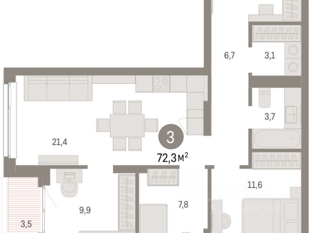 3-комн. квартира с предчистовой отделкой в ЖК "Брусника в Эльтауне" на 4 этаже. Общая площадь: 72.29 кв.м. Высота потолков 2.7 м. Квартира находится в корпусе 5. Дом монолитный, одноподъездный, высотой 7 этажей. На этаже 8 квартир. В подъезде 1 пассажирский и 1 грузовой лифт. Окончание строительства - 4 квартал 2028 года. Оформление сделки по договору долевого участия. Квартира с кухней-гостиной и тремя спальнями в Бруснике в Эльтауне. Особенности планировки: вид во двор, лоджия, постирочная, разнесённые спальни. квартиры в нашей базе: ЛТН01.1-Ж10.4.7. Квартал "Брусника в Эльтауне" расположился к северу-западу от Челябинска в окружении лесного массива, рядом с Лебединым прудом и Скалистым озером. Две главных слова, характеризующих Эльтаун, — концентрация и разнообразие. Его структуру формируют сразу несколько типов застройки — коттеджи, таунхаусы, квартиры в мало- и среднеэтажных домах, в перспективе нескольких лет здесь будут открыты десятки кафе, ресторанов, магазинов, аптек, медицинских и фитнес-центров. Для круглогодичного отдыха в городе построят собственный курорт. В Эльтауне будет действовать концепция непрерывного образования. Уже открыт муниципальный детский сад "Ёлочка" на 230 мест. В планах — инновационная школа на 1100 учеников. Кроме того, в Эльтауне организован Научно-исследовательский центр девелопмента МBA и МФТИ — одного из лучших вузов страны. Брусника стала полноправным девелопером Эльтауна. Мы построим здесь новый квартал со среднеэтажным жильём, богатым озеленением и разнообразной коммерческой и социальной инфраструктурой. Квартал Брусники расположен на въезде в город и станет его лицом. Недалеко от проекта проходит Новоградский тракт. По нему можно быстро добраться до Челябинска, озёр Увильды, Тургояк, Кисегач и Еловое, горнолыжных курортов "Солнечная долина", "Евразия" и "Завьялиха", парков "Таганай" и "Зюраткуль". Между Эльтауном и Челябинском курсирует автобус. Количество маршрутов и остановок общественного транспорта будет постоянно увеличиваться. До Челябинска — 5 минут на автомобиле До железнодорожного вокзала — 35 минут До аэропорта — 45 минут Проект Брусники в Эльтауне — комплексная застройка, состоящая из домов высотой не более 8 этажей. Территория Брусники разделена на несколько функциональных зон. Со стороны улицы Павленкова мы спроектировали фронт с коммерцией и приветственными площадями. На первых этажах домов — кафе, магазины, рестораны, кружки и образовательные студии. В глубине квартала расположатся общественные пространства с дождевыми садами, огородами и рощей. Ближе к лесу — пространство, которое мы назвали "задний двор". Здесь — игровые лужайки, плейхабы, луг для пикников и йоги, волейбольные площадки, воркаут. В этой же части, на границе квартала, предусмотрена парковка, на которой мы высадим взрослые деревья и кустарники. #2MEbVb