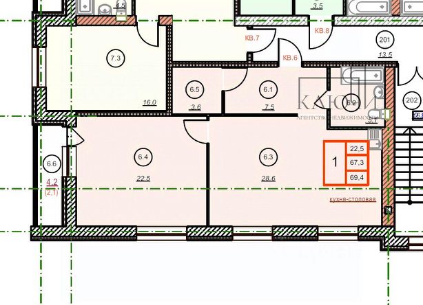 Площадь 65,7 квадратных метров;