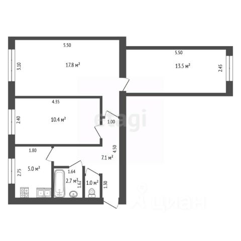 • ✅ Объект наибольшей площади: 57,5 м²