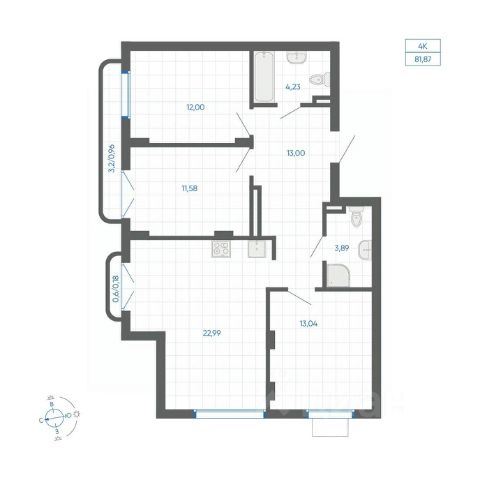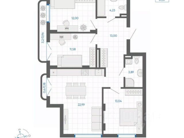 • ✅ Минимальная площадь: 56,4 м²