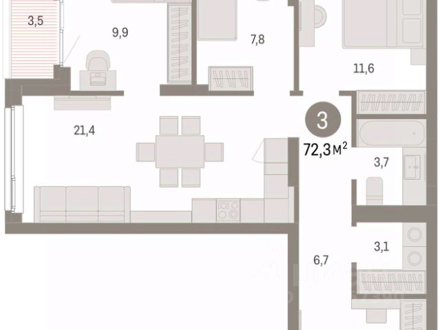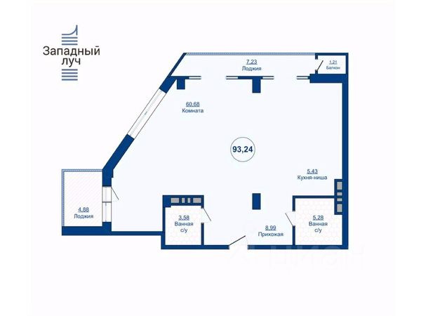 - с/у раздельный; просторный туалет с раковиной - на входе, ванная комната - между двумя жилыми комнатами;