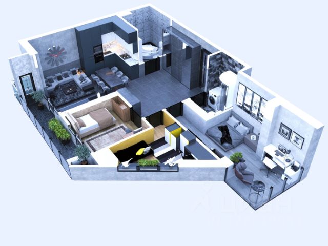 - функциональная площадь 64,1 кв.м., кухня - гостиная 16,3 кв.м, спальня 15,9 кв.м. и детская 16,4 кв.м;