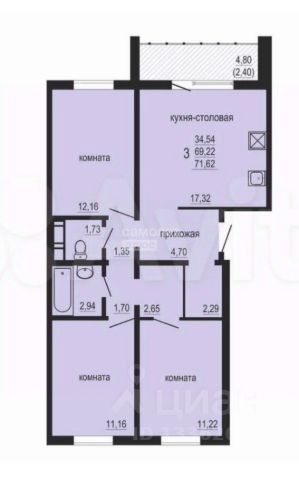 Площадь 55,2 кв.м без учёта балконов.