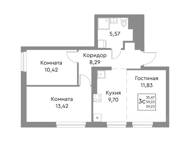 - Жилые комнаты 11,6 кв.м и 13,8 кв.м
