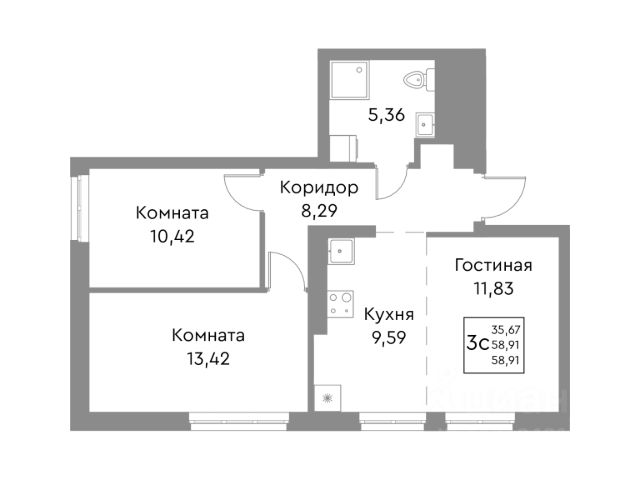 Светлая и тихая: Окна выходят во двор на солнечную сторону (восток/запад), обеспечивая максимум света и отсутствие шума. Торцевые стены дополнительно утеплены. Высокие потолки 2.7 м.