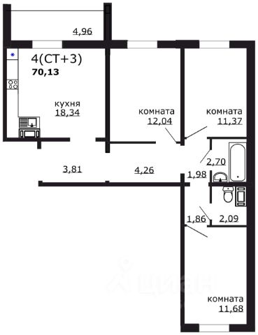 3-к квартира в центре города. Удачное расположение дома позволяет добраться в любой район города за короткий промежуток времени.