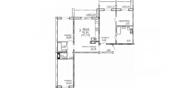 Огромная кухня-гостиная 47,8 м² с кухонным гарнитуром стоимостью 1,8 млн руб. встроенная техника (варочная панель, духовой шкаф, посудомойка, холодильник) уже ждёт вас!