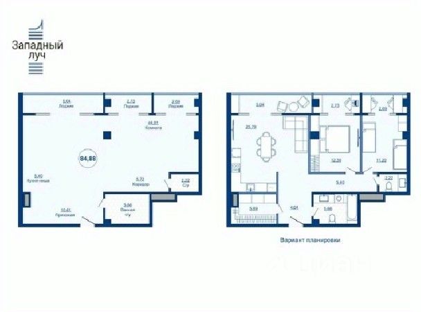 Предлагаем Вашему вниманию современную квартиру с отличной планировкой Студия + две спальни, в комфортабельном жилом комплексе премиум-класса "Западный луч", по адресу ул.Энгельса д.4!