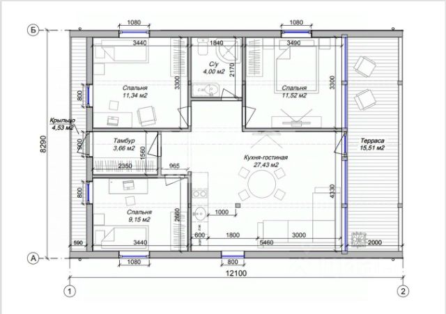 1. Основной дом (1 658 м², черновая отделка)
