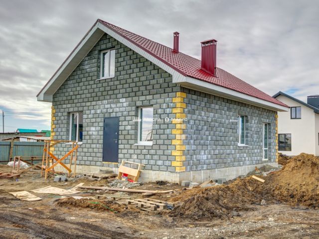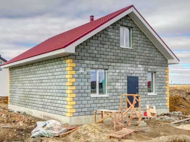 • Стены: шлакоблок + облицовка кирпичом — тёпло, надёжно.