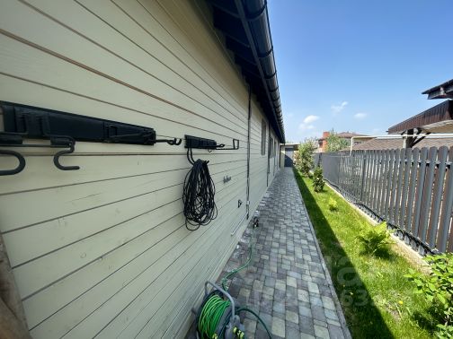 Материал стен: газоблок-300 мм, утеплитель-50 мм, облицован кирпичом и доской ДПК