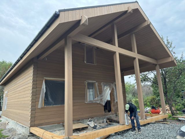Продается дом из клееного бруса с террасой в уютном СНТ Медик на берегу Шершневского водохранилища! Дом выполнен из клееного бруса с элементами Фахверк в стиле загородной французской классики. Большие окна наполняют внутреннее пространство светом. Планировка: На первом этаже расположены мастер-спальня со своим санузлом и гардеробной, просторная гостиная совмещенная со столовой, гостевой санузел, кухня, котельная и уютная терраса для отдыха. На мансардном уровне — еще одна комната, зона отдыха и хозблок. Дом легко адаптируется как для сезонного, так и для постоянного проживания. В дом заведены все необходимые коммуникации, установлены окна и двери, контур отопления. Внутренняя отделка не требуется, брус окрашен снаружи и внутри! На участке сохранены плодовые деревья и кустарники! Будет установлен забор с откатными воротами и калиткой. Предусмотрены места для парковки автомобиля! Дом на финальной стадии монтажа и обустройства коммуникаций. Записывайтесь на просмотр! Продажа дома и участка от крупной строительной компании с многолетним опытом в строительстве и надежной репутацией на рынке!