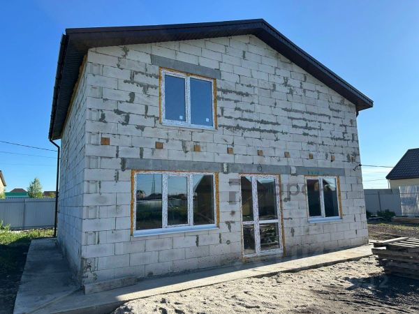 Материал стен: газоблок-300 мм, утеплитель-50 мм, облицован кирпичом и доской ДПК