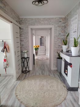 - Дом : Два этажа - 225 кв. м., 7 комнат. Строился для себя, использовались только лучшие материалы. Стены: Шлакоблок, обкладка - кирпич, межкомнатные стены- кирпич(150). Дом очень теплый, первый этаж-теплый пол ( водяной), второй- радиаторы.