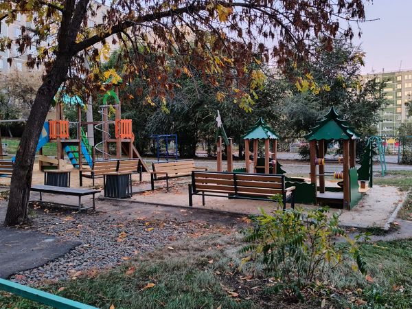 Расположение: внутри жилого квартала, вдали от дорог, но близко к остановкам общественного транспорта