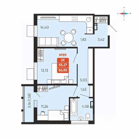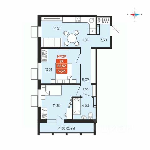 • ✅ Минимальная площадь: 38,4 м²
