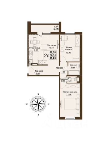 Квартира от застройщика - студия + 2 спальни, площадью 56,20 кв.м. Жилой комплекс "Парковый Премиум" - новое качество жилья комфорт-класса. Кирпичные фасады первых этажей и дизайнерская отделка парадных создадут особую атмосферу комфорта. Собственный выход в лес, лесная тропа, спортивные площадки и детские игровые зоны для разных возрастов - обеспечат необходимые условия для досуга и дружеского общения, а огороженная территория, видеонаблюдение и дворы без машин сделают проживание спокойным и безопасным. Кроме того, на время строительства муниципального детского сада работает частный детский сад, бесплатный для жителей. Вам не придется думать о тратах на ремонт, ведь вы заедете в квартиру с чистовой отделкой. Панорамное остекление и вид на лес становятся дополнительным преимуществом. Удаленность ЖК от производств и заводов - позволят дышать полной грудью и больше времени проводить на свежем воздухе. "Парковый Премиум" располагается в десяти минутах от ТЦ "Космос". До жилого комплекса жители могут добраться на муниципальном общественном транспорте - маршрутное такси 216 ходит ежедневно в рабочем режиме от остановки " ул. Чичерина". Чтобы ознакомиться с остальными планировками квартир, переходите в профиль застройщика. #984568