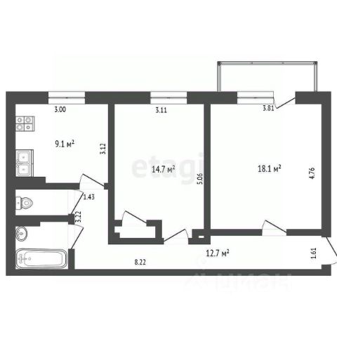 Удобная планировка: просторная кухня-гостиная + спальня, санузел смежный. Установлены евроокна, межкомнатные двери. В спальне ремонт: обои, линолеум, натяжной потолок.