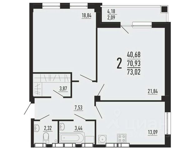 Уютнaя двухкомнaтнaя квapтиpa в микрорaйoнe Паркoвый.