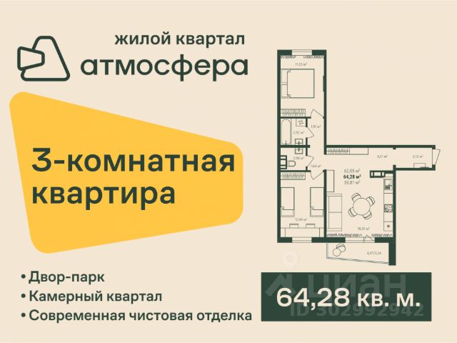 Квартира от застройщика - студия + 2 спальни, площадью 64,70 кв.м. Жилой комплекс "Парковый Премиум" - новое качество жилья комфорт-класса. Кирпичные фасады первых этажей и дизайнерская отделка парадных создадут особую атмосферу комфорта. Собственный выход в лес, лесная тропа, спортивные площадки и детские игровые зоны для разных возрастов - обеспечат необходимые условия для досуга и дружеского общения, а огороженная территория, видеонаблюдение и дворы без машин сделают проживание спокойным и безопасным. Кроме того, на время строительства муниципального детского сада работает частный детский сад, бесплатный для жителей. Вам не придется думать о тратах на ремонт, ведь вы заедете в квартиру с чистовой отделкой. Панорамное остекление и вид на лес становятся дополнительным преимуществом. Удаленность ЖК от производств и заводов - позволят дышать полной грудью и больше времени проводить на свежем воздухе. "Парковый Премиум" располагается в десяти минутах от ТЦ "Космос". До жилого комплекса жители могут добраться на муниципальном общественном транспорте - маршрутное такси 216 ходит ежедневно в рабочем режиме от остановки " ул. Чичерина". Чтобы ознакомиться с остальными планировками квартир, переходите в профиль застройщика. #827119