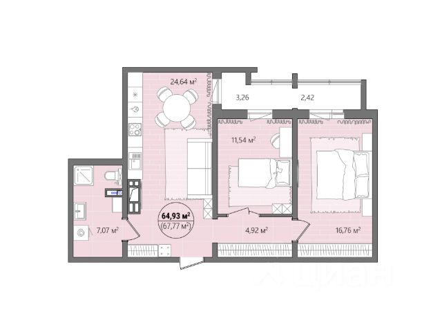 Арт. 133091612 Квартира с потрясающими характеристиками в премиум ЖК "Алое Поле"- идеальный вариант для инвестиции!
