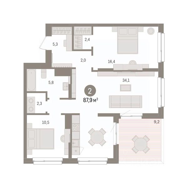 Продается двухкомнатная квартира от застройщика с предчистовой отделкой в ЖК "Брусника в Эльтауне" на 8 этаже. Общая площадь: 87.88 кв.м. Высота потолков 2.7 м. Квартира находится в корпусе 4. Дом монолитный, одноподъездный, высотой 8 этажей. На этаже 7 квартир. В подъезде 1 пассажирский и 1 грузовой лифт. Окончание строительства - 4 квартал 2028 года. Оформление сделки по договору долевого участия. Квартира с кухней-гостиной и двумя спальнями в Брусника в Эльтауне. Особенности планировки: гардеробная, постирочная, разнесённые спальни, терраса на крыше. квартиры в нашей базе: ЛТН01.1-Ж4.8.3. Квартал "Брусника в Эльтауне" расположился к северу-западу от Челябинска в окружении лесного массива, рядом с Лебединым прудом и Скалистым озером. Две главных слова, характеризующих Эльтаун, — концентрация и разнообразие. Его структуру формируют сразу несколько типов застройки — коттеджи, таунхаусы, квартиры в мало- и среднеэтажных домах, в перспективе нескольких лет здесь будут открыты десятки кафе, ресторанов, магазинов, аптек, медицинских и фитнес-центров. Для круглогодичного отдыха в городе построят собственный курорт. В Эльтауне будет действовать концепция непрерывного образования. Уже открыт муниципальный детский сад "Ёлочка" на 230 мест. В планах — инновационная школа на 1100 учеников. Кроме того, в Эльтауне организован Научно-исследовательский центр девелопмента МBA и МФТИ — одного из лучших вузов страны. Брусника стала полноправным девелопером Эльтауна. Мы построим здесь новый квартал со среднеэтажным жильём, богатым озеленением и разнообразной коммерческой и социальной инфраструктурой. Квартал Брусники расположен на въезде в город и станет его лицом. Недалеко от проекта проходит Новоградский тракт. По нему можно быстро добраться до Челябинска, озёр Увильды, Тургояк, Кисегач и Еловое, горнолыжных курортов "Солнечная долина", "Евразия" и "Завьялиха", парков "Таганай" и "Зюраткуль". Между Эльтауном и Челябинском курсирует автобус. Количество маршрутов и остановок общественного транспорта будет постоянно увеличиваться. До Челябинска — 5 минут на автомобиле До железнодорожного вокзала — 35 минут До аэропорта — 45 минут Проект Брусники в Эльтауне — комплексная застройка, состоящая из домов высотой не более 8 этажей. Территория Брусники разделена на несколько функциональных зон. Со стороны улицы Павленкова мы спроектировали фронт с коммерцией и приветственными площадями. На первых этажах домов — кафе, магазины, рестораны, кружки и образовательные студии. В глубине квартала расположатся общественные пространства с дождевыми садами, огородами и рощей. Ближе к лесу — пространство, которое мы назвали "задний двор". Здесь — игровые лужайки, плейхабы, луг для пикников и йоги, волейбольные площадки, воркаут. В этой же части, на границе квартала, предусмотрена парковка, на которой мы высадим взрослые деревья и кустарники. #z6dc3B