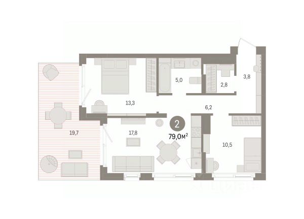 Продается 2-комн. квартира с предчистовой отделкой в ЖК "Брусника в Эльтауне" на 1 этаже. Общая площадь: 78.96 кв.м. Высота потолков 2.7 м. Дом монолитный, многоподъездный, переменной этажности, от 6 до 8 этажей. Квартира находится в 1-й секции высотой 8 этажей в корпусе 1. На этаже 4 квартиры. В подъезде 1 пассажирский и 1 грузовой лифт. Окончание строительства - 4 квартал 2028 года. Оформление сделки по договору долевого участия. Квартира с кухней-гостиной и двумя спальнями в Брусника в Эльтауне. Особенности планировки: вид во двор, гардеробная, окна в пол, панорамное остекление, разнесённые спальни, терраса. квартиры в нашей базе: ЛТН01.1-Ж1.1.3. Квартал "Брусника в Эльтауне" расположился к северу-западу от Челябинска в окружении лесного массива, рядом с Лебединым прудом и Скалистым озером. Две главных слова, характеризующих Эльтаун, — концентрация и разнообразие. Его структуру формируют сразу несколько типов застройки — коттеджи, таунхаусы, квартиры в мало- и среднеэтажных домах, в перспективе нескольких лет здесь будут открыты десятки кафе, ресторанов, магазинов, аптек, медицинских и фитнес-центров. Для круглогодичного отдыха в городе построят собственный курорт. В Эльтауне будет действовать концепция непрерывного образования. Уже открыт муниципальный детский сад "Ёлочка" на 230 мест. В планах — инновационная школа на 1100 учеников. Кроме того, в Эльтауне организован Научно-исследовательский центр девелопмента МBA и МФТИ — одного из лучших вузов страны. Брусника стала полноправным девелопером Эльтауна. Мы построим здесь новый квартал со среднеэтажным жильём, богатым озеленением и разнообразной коммерческой и социальной инфраструктурой. Квартал Брусники расположен на въезде в город и станет его лицом. Недалеко от проекта проходит Новоградский тракт. По нему можно быстро добраться до Челябинска, озёр Увильды, Тургояк, Кисегач и Еловое, горнолыжных курортов "Солнечная долина", "Евразия" и "Завьялиха", парков "Таганай" и "Зюраткуль". Между Эльтауном и Челябинском курсирует автобус. Количество маршрутов и остановок общественного транспорта будет постоянно увеличиваться. До Челябинска — 5 минут на автомобиле До железнодорожного вокзала — 35 минут До аэропорта — 45 минут Проект Брусники в Эльтауне — комплексная застройка, состоящая из домов высотой не более 8 этажей. Территория Брусники разделена на несколько функциональных зон. Со стороны улицы Павленкова мы спроектировали фронт с коммерцией и приветственными площадями. На первых этажах домов — кафе, магазины, рестораны, кружки и образовательные студии. В глубине квартала расположатся общественные пространства с дождевыми садами, огородами и рощей. Ближе к лесу — пространство, которое мы назвали "задний двор". Здесь — игровые лужайки, плейхабы, луг для пикников и йоги, волейбольные площадки, воркаут. В этой же части, на границе квартала, предусмотрена парковка, на которой мы высадим взрослые деревья и кустарники. #zMdCwm