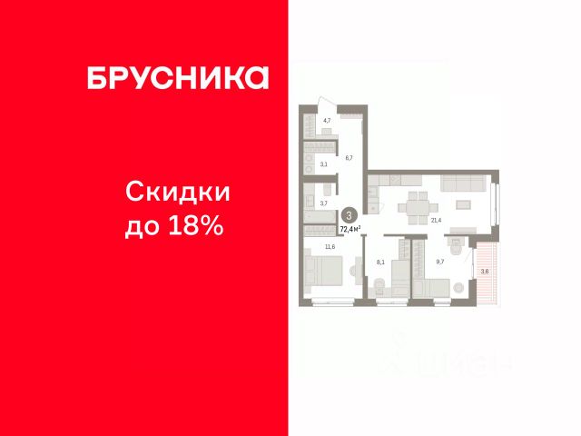 3-комн. квартира с предчистовой отделкой в ЖК "Брусника в Эльтауне" на 3 этаже. Общая площадь: 72.4 кв.м. Высота потолков 2.7 м. Квартира находится в корпусе 2. Дом монолитный, одноподъездный, высотой 8 этажей. На этаже 10 квартир. В подъезде 1 пассажирский и 1 грузовой лифт. Окончание строительства - 4 квартал 2028 года. Оформление сделки по договору долевого участия. Квартира с кухней-гостиной и тремя спальнями в Брусника в Эльтауне. Особенности планировки: вид во двор, второй санузел, лоджия, постирочная, разнесённые спальни. квартиры в нашей базе: ЛТН01.1-Ж2.3.6. Квартал "Брусника в Эльтауне" расположился к северу-западу от Челябинска в окружении лесного массива, рядом с Лебединым прудом и Скалистым озером. Две главных слова, характеризующих Эльтаун, — концентрация и разнообразие. Его структуру формируют сразу несколько типов застройки — коттеджи, таунхаусы, квартиры в мало- и среднеэтажных домах, в перспективе нескольких лет здесь будут открыты десятки кафе, ресторанов, магазинов, аптек, медицинских и фитнес-центров. Для круглогодичного отдыха в городе построят собственный курорт. В Эльтауне будет действовать концепция непрерывного образования. Уже открыт муниципальный детский сад "Ёлочка" на 230 мест. В планах — инновационная школа на 1100 учеников. Кроме того, в Эльтауне организован Научно-исследовательский центр девелопмента МBA и МФТИ — одного из лучших вузов страны. Брусника стала полноправным девелопером Эльтауна. Мы построим здесь новый квартал со среднеэтажным жильём, богатым озеленением и разнообразной коммерческой и социальной инфраструктурой. Квартал Брусники расположен на въезде в город и станет его лицом. Недалеко от проекта проходит Новоградский тракт. По нему можно быстро добраться до Челябинска, озёр Увильды, Тургояк, Кисегач и Еловое, горнолыжных курортов "Солнечная долина", "Евразия" и "Завьялиха", парков "Таганай" и "Зюраткуль". Между Эльтауном и Челябинском курсирует автобус. Количество маршрутов и остановок общественного транспорта будет постоянно увеличиваться. До Челябинска — 5 минут на автомобиле До железнодорожного вокзала — 35 минут До аэропорта — 45 минут Проект Брусники в Эльтауне — комплексная застройка, состоящая из домов высотой не более 8 этажей. Территория Брусники разделена на несколько функциональных зон. Со стороны улицы Павленкова мы спроектировали фронт с коммерцией и приветственными площадями. На первых этажах домов — кафе, магазины, рестораны, кружки и образовательные студии. В глубине квартала расположатся общественные пространства с дождевыми садами, огородами и рощей. Ближе к лесу — пространство, которое мы назвали "задний двор". Здесь — игровые лужайки, плейхабы, луг для пикников и йоги, волейбольные площадки, воркаут. В этой же части, на границе квартала, предусмотрена парковка, на которой мы высадим взрослые деревья и кустарники. #z6DC3I