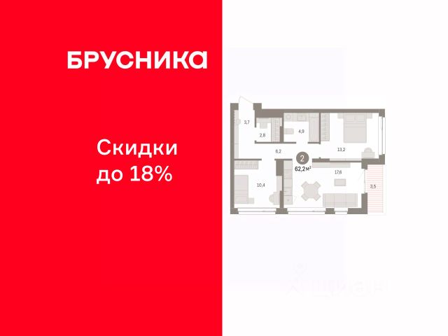 Продается двухкомнатная квартира от застройщика с предчистовой отделкой в ЖК "Брусника в Эльтауне" на 5 этаже. Общая площадь: 62.19 кв.м. Высота потолков 2.7 м. Дом монолитный, многоподъездный, переменной этажности, от 6 до 8 этажей. Квартира находится в 1-й секции высотой 8 этажей в корпусе 1. На этаже 4 квартиры. В подъезде 1 пассажирский и 1 грузовой лифт. Окончание строительства - 4 квартал 2028 года. Оформление сделки по договору долевого участия. Квартира с кухней-гостиной и двумя спальнями в Брусника в Эльтауне. Особенности планировки: гардеробная, лоджия, разнесённые спальни. квартиры в нашей базе: ЛТН01.1-Ж1.5.4. Квартал "Брусника в Эльтауне" расположился к северу-западу от Челябинска в окружении лесного массива, рядом с Лебединым прудом и Скалистым озером. Две главных слова, характеризующих Эльтаун, — концентрация и разнообразие. Его структуру формируют сразу несколько типов застройки — коттеджи, таунхаусы, квартиры в мало- и среднеэтажных домах, в перспективе нескольких лет здесь будут открыты десятки кафе, ресторанов, магазинов, аптек, медицинских и фитнес-центров. Для круглогодичного отдыха в городе построят собственный курорт. В Эльтауне будет действовать концепция непрерывного образования. Уже открыт муниципальный детский сад "Ёлочка" на 230 мест. В планах — инновационная школа на 1100 учеников. Кроме того, в Эльтауне организован Научно-исследовательский центр девелопмента МBA и МФТИ — одного из лучших вузов страны. Брусника стала полноправным девелопером Эльтауна. Мы построим здесь новый квартал со среднеэтажным жильём, богатым озеленением и разнообразной коммерческой и социальной инфраструктурой. Квартал Брусники расположен на въезде в город и станет его лицом. Недалеко от проекта проходит Новоградский тракт. По нему можно быстро добраться до Челябинска, озёр Увильды, Тургояк, Кисегач и Еловое, горнолыжных курортов "Солнечная долина", "Евразия" и "Завьялиха", парков "Таганай" и "Зюраткуль". Между Эльтауном и Челябинском курсирует автобус. Количество маршрутов и остановок общественного транспорта будет постоянно увеличиваться. До Челябинска — 5 минут на автомобиле До железнодорожного вокзала — 35 минут До аэропорта — 45 минут Проект Брусники в Эльтауне — комплексная застройка, состоящая из домов высотой не более 8 этажей. Территория Брусники разделена на несколько функциональных зон. Со стороны улицы Павленкова мы спроектировали фронт с коммерцией и приветственными площадями. На первых этажах домов — кафе, магазины, рестораны, кружки и образовательные студии. В глубине квартала расположатся общественные пространства с дождевыми садами, огородами и рощей. Ближе к лесу — пространство, которое мы назвали "задний двор". Здесь — игровые лужайки, плейхабы, луг для пикников и йоги, волейбольные площадки, воркаут. В этой же части, на границе квартала, предусмотрена парковка, на которой мы высадим взрослые деревья и кустарники. #zmDCsV