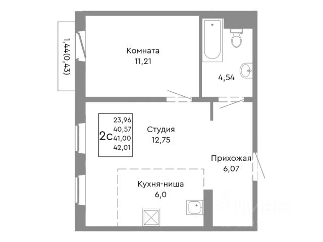+ Раздельный санузел, балкон;