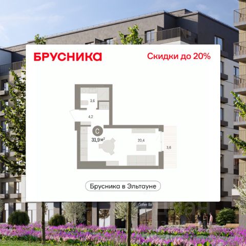 Торопитесь оформить бронирование на этих условиях, период акции ограничен! Стоимость квартиры указана со скидкой, ваша экономия составит 940,000 руб. По всем вопросам обращайтесь в офис продаж, мы вам все подробно расскажем. Однокомнатная студия с предчистовой отделкой в ЖК "Брусника в Эльтауне" на 5 этаже. Общая площадь: 31.83 кв.м., площадь гостиной 20.4 кв.м., из которых 5 кв.м. выделено под кухонную зону. Все окна выходят на одну сторону. В квартире один балкон, один совмещенный санузел. Высота потолков 2.7 м. Квартира находится в корпусе 5. Дом монолитный, одноподъездный, высотой 7 этажей. На этаже 8 квартир. В подъезде 1 пассажирский и 1 грузовой лифт. Окончание строительства - 4 квартал 2028 года. Оформление сделки по договору долевого участия. Студия в Бруснике в Эльтауне. Особенности планировки: балкон, вид во двор. квартиры в нашей базе: ЛТН01.1-Ж10.5.5. Квартал "Брусника в Эльтауне" расположился к северу-западу от Челябинска в окружении лесного массива, рядом с Лебединым прудом и Скалистым озером. Две главных слова, характеризующих Эльтаун, — концентрация и разнообразие. Его структуру формируют сразу несколько типов застройки — коттеджи, таунхаусы, квартиры в мало- и среднеэтажных домах, в перспективе нескольких лет здесь будут открыты десятки кафе, ресторанов, магазинов, аптек, медицинских и фитнес-центров. Для круглогодичного отдыха в городе построят собственный курорт. В Эльтауне будет действовать концепция непрерывного образования. Уже открыт муниципальный детский сад "Ёлочка" на 230 мест. В планах — инновационная школа на 1100 учеников. Кроме того, в Эльтауне организован Научно-исследовательский центр девелопмента МBA и МФТИ — одного из лучших вузов страны. Брусника стала полноправным девелопером Эльтауна. Мы построим здесь новый квартал со среднеэтажным жильём, богатым озеленением и разнообразной коммерческой и социальной инфраструктурой. Квартал Брусники расположен на въезде в город и станет его лицом. Недалеко от проекта проходит Новоградский тракт. По нему можно быстро добраться до Челябинска, озёр Увильды, Тургояк, Кисегач и Еловое, горнолыжных курортов "Солнечная долина", "Евразия" и "Завьялиха", парков "Таганай" и "Зюраткуль". Между Эльтауном и Челябинском курсирует автобус. Количество маршрутов и остановок общественного транспорта будет постоянно увеличиваться. До Челябинска — 5 минут на автомобиле До железнодорожного вокзала — 35 минут До аэропорта — 45 минут Проект Брусники в Эльтауне — комплексная застройка, состоящая из домов высотой не более 8 этажей. Территория Брусники разделена на несколько функциональных зон. Со стороны улицы Павленкова мы спроектировали фронт с коммерцией и приветственными площадями. На первых этажах домов — кафе, магазины, рестораны, кружки и образовательные студии. В глубине квартала расположатся общественные пространства с дождевыми садами, огородами и рощей. Ближе к лесу — пространство, которое мы назвали "задний двор". Здесь — игровые лужайки, плейхабы, луг для пикников Продается квартира с балконом в Челябинской области.
