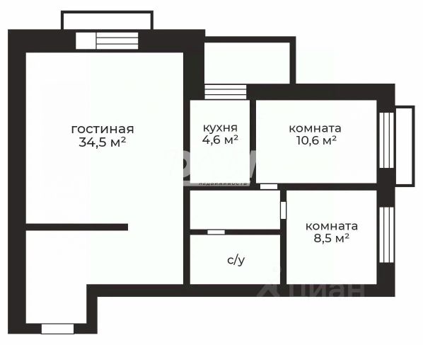 Удачная планировка, комнаты примерно одинакового размера: 12,4 (окна во двор) + 12,8 (окна во двор) + 12,6. Большая гостиная - 17 квадратных метров. Просторная кухня - 10,9 квадратных метров (окна во двор).
