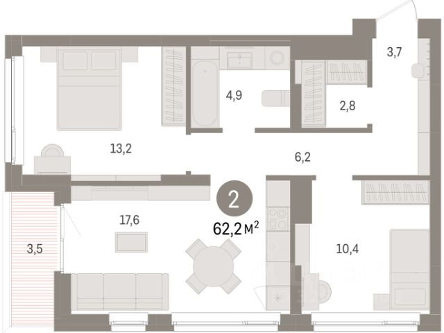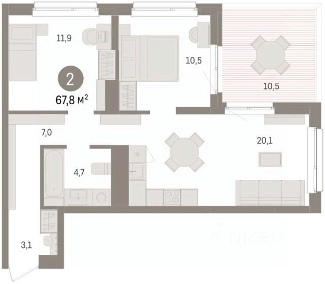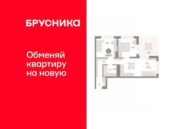 Просторная двухкомнатная квартира с предчистовой отделкой в ЖК "Брусника в Эльтауне" на 2 этаже. Общая площадь: 67.26 кв.м., жилая: 23.8 кв.м., площадь просторной кухни-гостиной: 17.6 кв.м. Квартира угловая, очень светлая, естественная вентиляция при открытии окон. В квартире одна лоджия, один совмещенный санузел. Высота потолков 2.7 м. Квартира находится в корпусе 3. Дом монолитный, одноподъездный, высотой 8 этажей. На этаже 10 квартир. В подъезде 1 пассажирский и 1 грузовой лифт. Окончание строительства - 4 квартал 2028 года. Оформление сделки по договору долевого участия. Квартира с кухней-гостиной и двумя спальнями в Брусника в Эльтауне. Особенности планировки: лоджия, постирочная, разнесённые спальни. квартиры в нашей базе: ЛТН01.1-Ж3.2.9. Квартал "Брусника в Эльтауне" расположился к северу-западу от Челябинска в окружении лесного массива, рядом с Лебединым прудом и Скалистым озером. Две главных слова, характеризующих Эльтаун, — концентрация и разнообразие. Его структуру формируют сразу несколько типов застройки — коттеджи, таунхаусы, квартиры в мало- и среднеэтажных домах, в перспективе нескольких лет здесь будут открыты десятки кафе, ресторанов, магазинов, аптек, медицинских и фитнес-центров. Для круглогодичного отдыха в городе построят собственный курорт. В Эльтауне будет действовать концепция непрерывного образования. Уже открыт муниципальный детский сад "Ёлочка" на 230 мест. В планах — инновационная школа на 1100 учеников. Кроме того, в Эльтауне организован Научно-исследовательский центр девелопмента МBA и МФТИ — одного из лучших вузов страны. Брусника стала полноправным девелопером Эльтауна. Мы построим здесь новый квартал со среднеэтажным жильём, богатым озеленением и разнообразной коммерческой и социальной инфраструктурой. Квартал Брусники расположен на въезде в город и станет его лицом. Недалеко от проекта проходит Новоградский тракт. По нему можно быстро добраться до Челябинска, озёр Увильды, Тургояк, Кисегач и Еловое, горнолыжных курортов "Солнечная долина", "Евразия" и "Завьялиха", парков "Таганай" и "Зюраткуль". Между Эльтауном и Челябинском курсирует автобус. Количество маршрутов и остановок общественного транспорта будет постоянно увеличиваться. До Челябинска — 5 минут на автомобиле До железнодорожного вокзала — 35 минут До аэропорта — 45 минут Проект Брусники в Эльтауне — комплексная застройка, состоящая из домов высотой не более 8 этажей. Территория Брусники разделена на несколько функциональных зон. Со стороны улицы Павленкова мы спроектировали фронт с коммерцией и приветственными площадями. На первых этажах домов — кафе, магазины, рестораны, кружки и образовательные студии. В глубине квартала расположатся общественные пространства с дождевыми садами, огородами и рощей. Ближе к лесу — пространство, которое мы назвали "задний двор". Здесь — игровые лужайки, плейхабы, луг для пикников и йоги, волейбольные площадки, воркаут. В этой же части, на границе квартала, предусмотрена парковка, на которой мы высадим