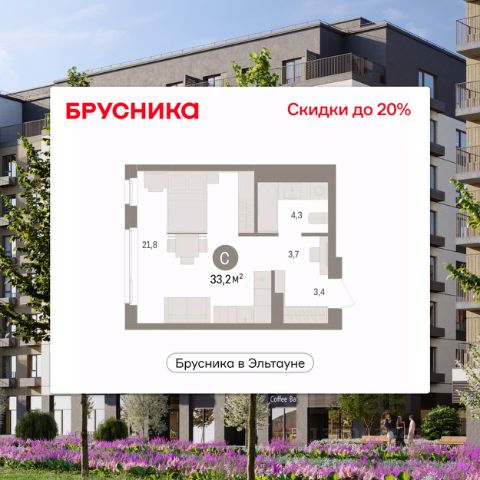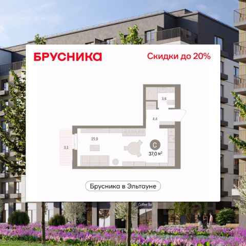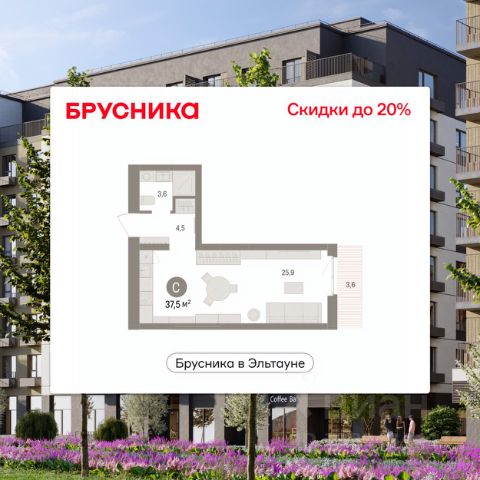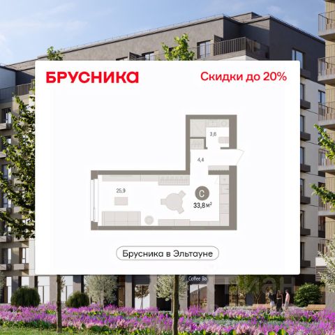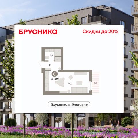 Просторная 1-комн. студия с предчистовой отделкой в ЖК "Брусника в Эльтауне" на 5 этаже. Общая площадь: 31.83 кв.м., площадь гостиной 20.4 кв.м., из которых 5 кв.м. выделено под кухонную зону. Все окна выходят на одну сторону. В квартире один балкон, один совмещенный санузел. Высота потолков 2.7 м. Квартира находится в корпусе 5. Дом монолитный, одноподъездный, высотой 7 этажей. На этаже 8 квартир. В подъезде 1 пассажирский и 1 грузовой лифт. Окончание строительства - 4 квартал 2028 года. Оформление сделки по договору долевого участия. Студия в Бруснике в Эльтауне. Особенности планировки: балкон, вид во двор. квартиры в нашей базе: ЛТН01.1-Ж10.5.5. Квартал "Брусника в Эльтауне" расположился к северу-западу от Челябинска в окружении лесного массива, рядом с Лебединым прудом и Скалистым озером. Две главных слова, характеризующих Эльтаун, — концентрация и разнообразие. Его структуру формируют сразу несколько типов застройки — коттеджи, таунхаусы, квартиры в мало- и среднеэтажных домах, в перспективе нескольких лет здесь будут открыты десятки кафе, ресторанов, магазинов, аптек, медицинских и фитнес-центров. Для круглогодичного отдыха в городе построят собственный курорт. В Эльтауне будет действовать концепция непрерывного образования. Уже открыт муниципальный детский сад "Ёлочка" на 230 мест. В планах — инновационная школа на 1100 учеников. Кроме того, в Эльтауне организован Научно-исследовательский центр девелопмента МBA и МФТИ — одного из лучших вузов страны. Брусника стала полноправным девелопером Эльтауна. Мы построим здесь новый квартал со среднеэтажным жильём, богатым озеленением и разнообразной коммерческой и социальной инфраструктурой. Квартал Брусники расположен на въезде в город и станет его лицом. Недалеко от проекта проходит Новоградский тракт. По нему можно быстро добраться до Челябинска, озёр Увильды, Тургояк, Кисегач и Еловое, горнолыжных курортов "Солнечная долина", "Евразия" и "Завьялиха", парков "Таганай" и "Зюраткуль". Между Эльтауном и Челябинском курсирует автобус. Количество маршрутов и остановок общественного транспорта будет постоянно увеличиваться. До Челябинска — 5 минут на автомобиле До железнодорожного вокзала — 35 минут До аэропорта — 45 минут Проект Брусники в Эльтауне — комплексная застройка, состоящая из домов высотой не более 8 этажей. Территория Брусники разделена на несколько функциональных зон. Со стороны улицы Павленкова мы спроектировали фронт с коммерцией и приветственными площадями. На первых этажах домов — кафе, магазины, рестораны, кружки и образовательные студии. В глубине квартала расположатся общественные пространства с дождевыми садами, огородами и рощей. Ближе к лесу — пространство, которое мы назвали "задний двор". Здесь — игровые лужайки, плейхабы, луг для пикников и йоги, волейбольные площадки, воркаут. В этой же части, на границе квартала, предусмотрена парковка, на которой мы высадим взрослые деревья и кустарники. #ZmCFDS