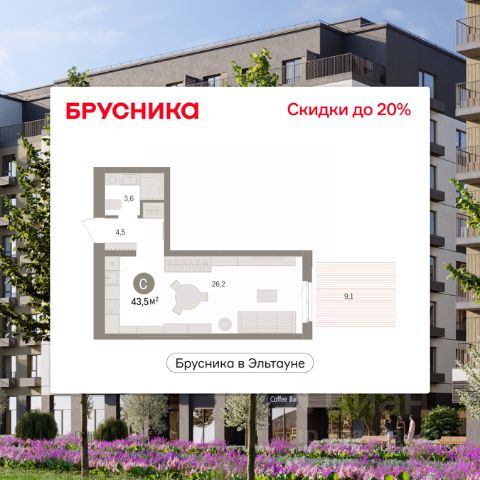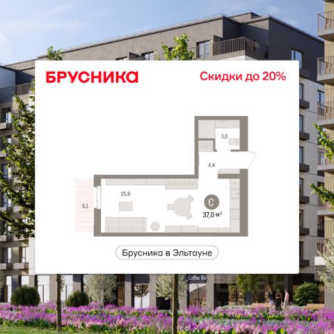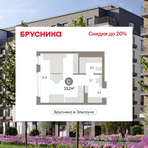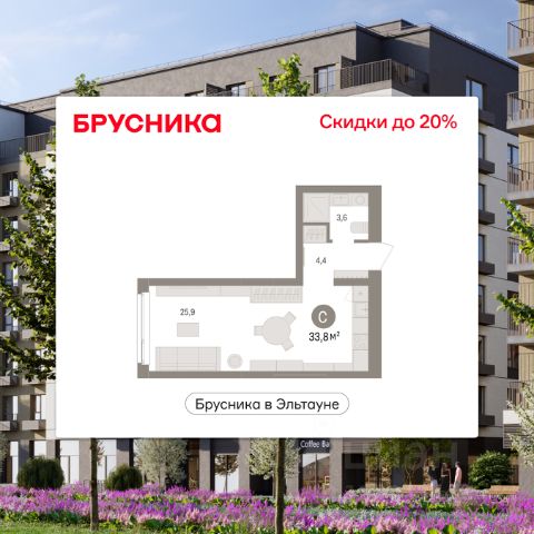 1-комн. студия с предчистовой отделкой в ЖК "Брусника в Эльтауне" на 2 этаже. Общая площадь: 33.17 кв.м., площадь гостиной 21.8 кв.м., из которых 5 кв.м. выделено под кухонную зону. Все окна выходят на одну сторону. В квартире один совмещенный санузел. Высота потолков 2.7 м. Квартира находится в корпусе 5. Дом монолитный, одноподъездный, высотой 7 этажей. На этаже 8 квартир. В подъезде 1 пассажирский и 1 грузовой лифт. Окончание строительства - 4 квартал 2028 года. Оформление сделки по договору долевого участия. Студия в Бруснике в Эльтауне. Особенности планировки: вид во двор. квартиры в нашей базе: ЛТН01.1-Ж10.2.1. Квартал "Брусника в Эльтауне" расположился к северу-западу от Челябинска в окружении лесного массива, рядом с Лебединым прудом и Скалистым озером. Две главных слова, характеризующих Эльтаун, — концентрация и разнообразие. Его структуру формируют сразу несколько типов застройки — коттеджи, таунхаусы, квартиры в мало- и среднеэтажных домах, в перспективе нескольких лет здесь будут открыты десятки кафе, ресторанов, магазинов, аптек, медицинских и фитнес-центров. Для круглогодичного отдыха в городе построят собственный курорт. В Эльтауне будет действовать концепция непрерывного образования. Уже открыт муниципальный детский сад "Ёлочка" на 230 мест. В планах — инновационная школа на 1100 учеников. Кроме того, в Эльтауне организован Научно-исследовательский центр девелопмента МBA и МФТИ — одного из лучших вузов страны. Брусника стала полноправным девелопером Эльтауна. Мы построим здесь новый квартал со среднеэтажным жильём, богатым озеленением и разнообразной коммерческой и социальной инфраструктурой. Квартал Брусники расположен на въезде в город и станет его лицом. Недалеко от проекта проходит Новоградский тракт. По нему можно быстро добраться до Челябинска, озёр Увильды, Тургояк, Кисегач и Еловое, горнолыжных курортов "Солнечная долина", "Евразия" и "Завьялиха", парков "Таганай" и "Зюраткуль". Между Эльтауном и Челябинском курсирует автобус. Количество маршрутов и остановок общественного транспорта будет постоянно увеличиваться. До Челябинска — 5 минут на автомобиле До железнодорожного вокзала — 35 минут До аэропорта — 45 минут Проект Брусники в Эльтауне — комплексная застройка, состоящая из домов высотой не более 8 этажей. Территория Брусники разделена на несколько функциональных зон. Со стороны улицы Павленкова мы спроектировали фронт с коммерцией и приветственными площадями. На первых этажах домов — кафе, магазины, рестораны, кружки и образовательные студии. В глубине квартала расположатся общественные пространства с дождевыми садами, огородами и рощей. Ближе к лесу — пространство, которое мы назвали "задний двор". Здесь — игровые лужайки, плейхабы, луг для пикников и йоги, волейбольные площадки, воркаут. В этой же части, на границе квартала, предусмотрена парковка, на которой мы высадим взрослые деревья и кустарники. #z6B5ft