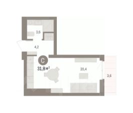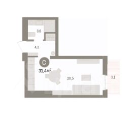 Однокомнатная студия от застройщика с предчистовой отделкой в ЖК "Брусника в Эльтауне" на 6 этаже. Общая площадь: 37 кв.м., площадь гостиной 20.9 кв.м., из которых 5 кв.м. выделено под кухонную зону. Все окна выходят на одну сторону. В квартире один балкон, один совмещенный санузел. Высота потолков 2.7 м.